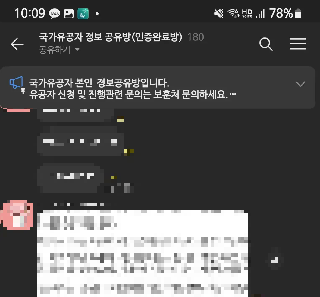 현재 제가 참여하고 있고, 180명 정도의 국가유공자 분들이 국가유공자 혜택, 정보 등을 나누고 있습니다.