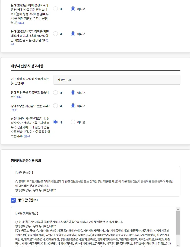 5. 질문에 답하고, 개인정보 동의를 눌러줍니다.