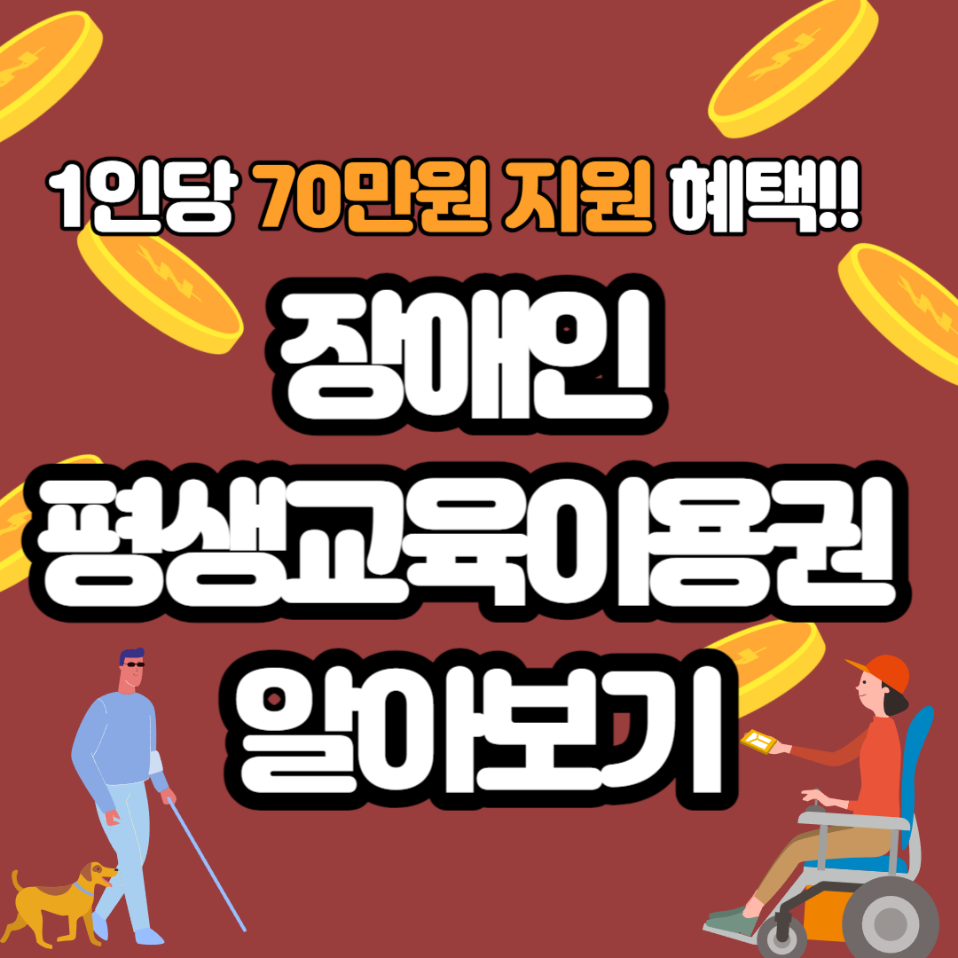 장애인 평생교육이용권(70만원) 무료로 받기, 신청 방법(사진 설명 포함), 신청 대상, 신청 기간, 지원 규모 및 추진 일, 지원 내용, 사용 기관, 문의 전화번호