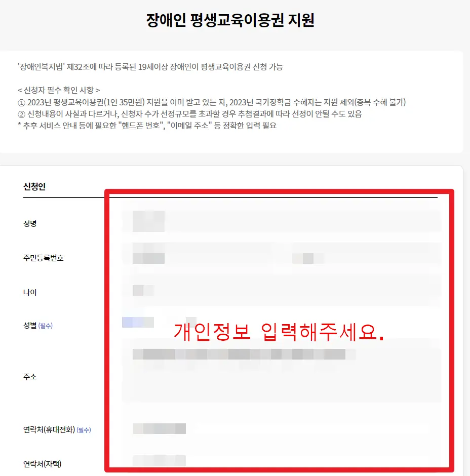 ★장애인 평생교육이용권 지원 유의사항이 있네요.